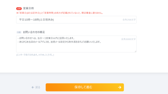 開店後に充実したものに作り変えることも可能ですのでとりあえず、開店申請をしたいという方であれば入力に従って進んでいきましょう!