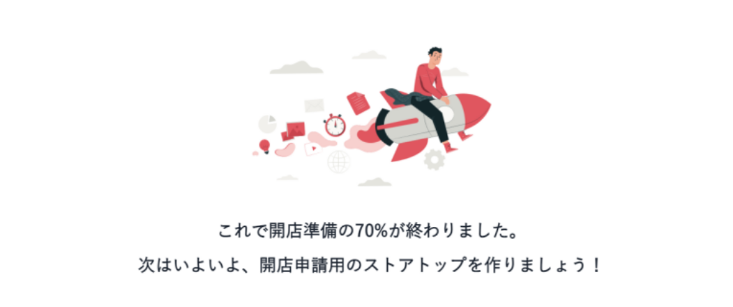 あとは、ストアのトップページの作成と、商品登録を一つ以上すれば、開店申請できるようになります。